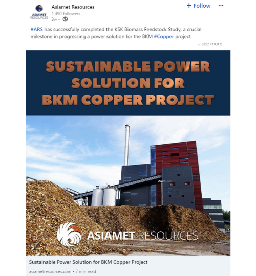 A few examples of our recent work for Asiamet Resources. Twitter (X) and LinkedIn account creative. Social media plays a pivotal role in modern business strategies by providing a dynamic platform for engagement, brand visibility, and audience interaction. It offers a direct line of communication with customers, allowing businesses to build relationships, gather feedback, and address concerns in real-time.